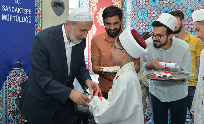 Sancaktepe İlçe Müftülüğüne bağlı Mimar Sinan Erkek Kur’an Kursunda hafızlık eğitimlerini tamamlayan 20 öğrenci için "Hafızlık İcazet Merasimi" düzenlendi.