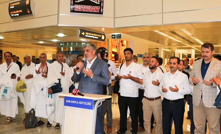 İl Müftülüğünce Şanlıurfa GAP Havaalanı'nda düzenlenen uğurlama törenine Şanlıurfa Valisi Salih Ayhan, İl Müftüsü Ramazan Tolan ve çok sayıda hac yolcularının yakınları katıldı.