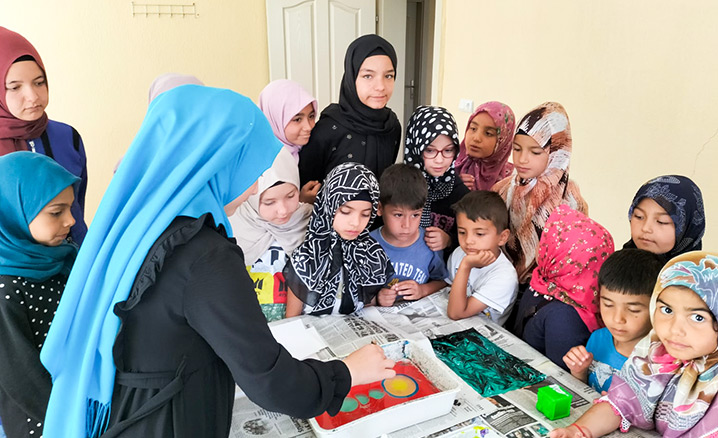 Bu kapsamda Sarız İlçesi’nde Kur’an-ı Kerim öğrenmek için Sarız İlçe Müftülüğüne bağlı cami ve Kur’an kurslarını dolduran çocuklar, İlçe Müftülüğünce düzenlenen etkinliklerle hem dini bilgiler öğreniyor hem de ebru sanatı ile de el becerilerini geliştiriyor.