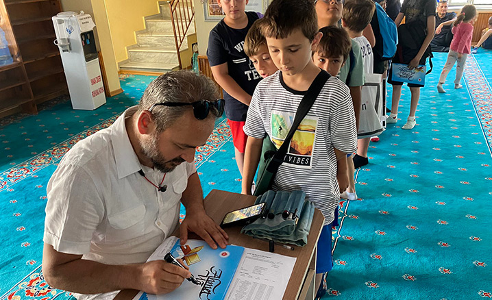 Bu kapsamda Şarköy İlçe Müftülüğüne bağlı Hacı Ahmet Tevfik Parlakyıldız Camii ve Gazi Süleyman Paşa Camii'nde açılan Yaz Kur'an Kursuna devam eden çocuklara kaligrafik isim yazıları hediye edildi.