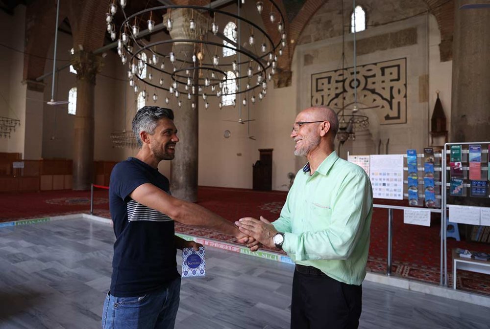 İsa Bey Camii bahçesinde arzu eden turistlere abdest almayı da öğreten imam Taşdemir, bazı ziyaretçilerden yıllar sonra bile mektuplar alıyor.