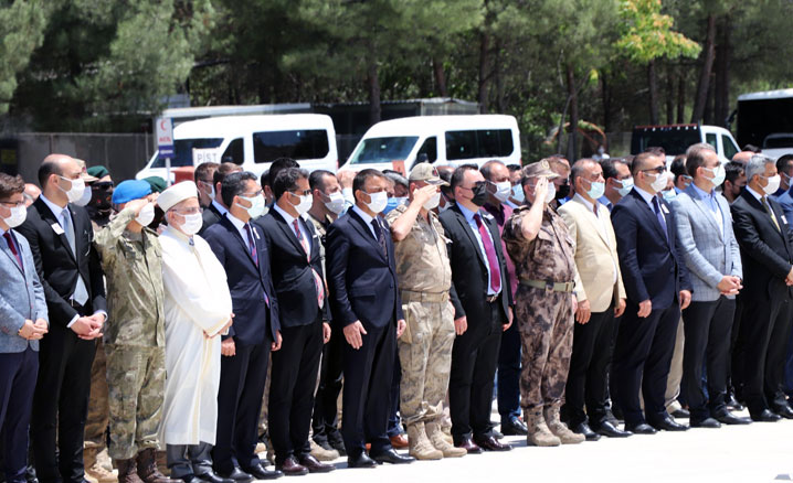 PKK’lı teröristlerin üs bölgesine uzun namlulu silahlarla gerçekleştirdiği saldırıda şehit düşen güvenlik korucusu Babat için Siirt 3. Komando Tugay Komutanlığı'nda tören düzenlendi.