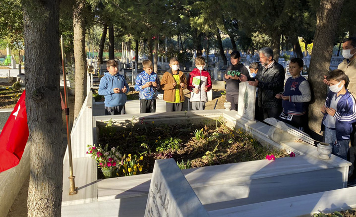 Öğrenciler, şehit öğretmenin kabri başında Kur'an-ı Kerim okudu, dua etti.