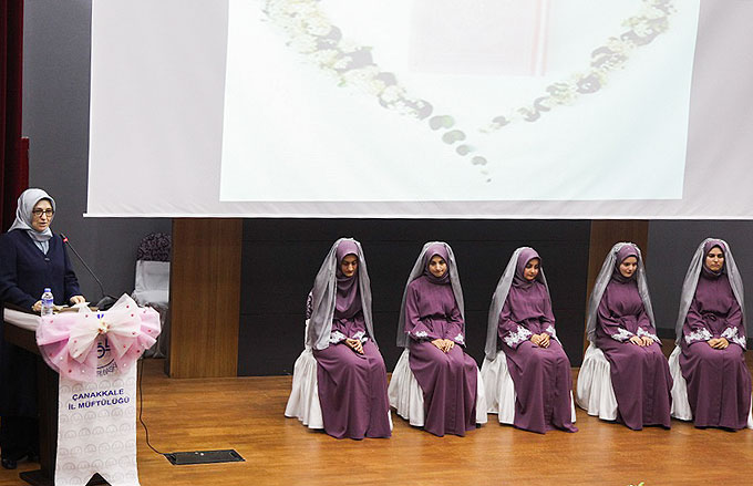 Programa Diyanet İşleri Başkanı Prof. Dr. Ali Erbaş’ın eşi Seher Erbaş, Çanakkale Valisi Orhan Tavlı´nın eşi Ayşe Tavlı, İl Özel İdare Müdürü Abdullah Köklü’nün eşi Yasemin Köklü, kurum amirleri ile ilçe müftülerinin eşleri, hafızlar ve aileleri ile kadın din görevlileri katıldı.