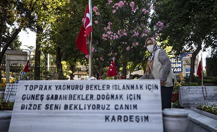 Arzu Yumak da Edirnekapı Mezarlığı'nda dedesi ve ninesinin kabrini ziyaretinden sonra, şehitliğe gelerek burada da dua ettiğini söyledi.