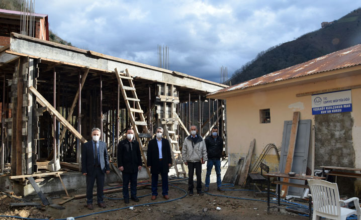 Espiye’de 22 Ağustos 2020 tarihinde yaşanan sel felaketi nedeniyle tamamen yıkılan Yeşilköy Köyü Kızılçukur Mahalle Camii yeniden inşa ediliyor.