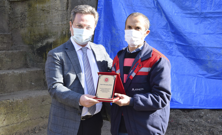 Konuşmaların ardından Vali Ünlü, caminin yapıldığı arsayı bağışlayan hayırsever Mustafa Şeker’e plaket takdim etti.