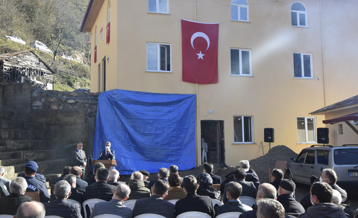 Kur’an-ı Kerim tilavetiyle başlayan açılış programında konuşan Giresun Valisi Enver Ünlü, “Selde şehit olanlara Allah’tan rahmet diliyoruz. Afetlerden ders çıkarmalıyız. Ev, okul, bina yaparken dere kenarlarından uzak yerlere yapmalıyız. Rabbim bir daha ülkemize ve bölgemize afet göstermesin. Camilerimizi cemaatsiz bırakmayalım. Caminin yapılmasında emeği geçenlerden Allah razı olsun.” dedi.