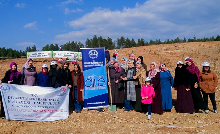 Kastamonu İl Müftülüğü Aile Dini Rehberlik Bürosu (ADRB) ve İl Müftülüğü Gençlik Koordinatörlüğünce yürütülen “Senin de Dikili Bir Ağacın Olsun” projesi kapsamında öğrenciler fidan dikti.