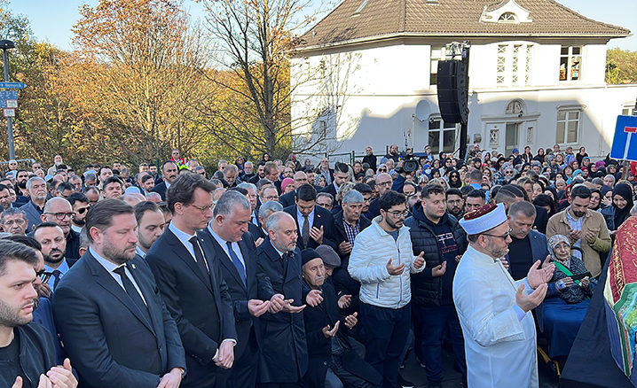 Mevlüde annenin sadece Almanya’daki Türk toplumu için değil Almanya’da yaşan bütün insanlar için örnek bir insan olduğunu söyleyen Berlin Büyükelçisi Ahmet Başar Şen ise, “Hepimiz için anneydi. Mevlüde anne 29 yıl önce bulunduğumuz mekânda 2 kızını 2 torununu ve bir yeğenini kaybetti. O büyük acıya rağmen ki doğal ölümle değil bir saldırıyla kaybetti. O büyük acıyı içine gömdü ve insanlık sevgisini öne çıkardı ve dost olalım demeden hiç vazgeçmedi” diye konuştu.
