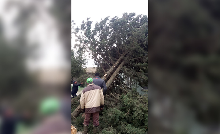 Vatandaşların desteğiyle caminin çatısına devrilen ağaç kaldırıldı.
