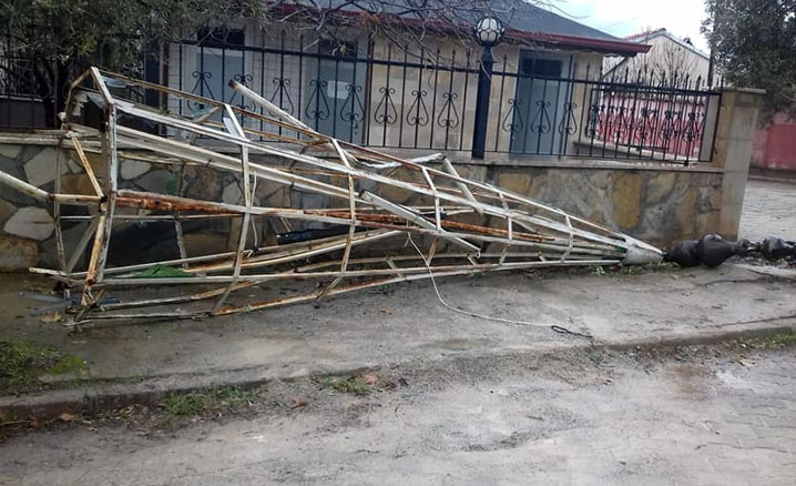 Kentte etkili olan kuvvetli rüzgâr nedeniyle iki caminin minare külahlarının yıkıldığı belirtildi.