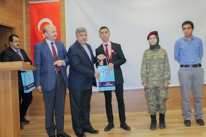 Dereceye giren öğrenciler ödüllendirilirken yarışmaya katılan tüm öğrencilere çeşitli hediyeler takdim edildi.