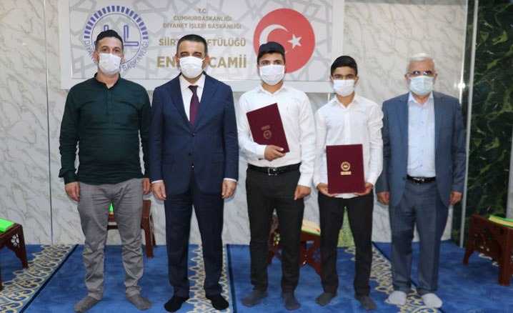 Siirt İl Müftülüğüne bağlı Kur’an kurslarında hafızlık eğitimini tamamlayarak mezun olan 81 öğrenci, hafızlık belgelerini Siirt Valisi Osman Hacıbektaşoğlu’nun elinden aldı.