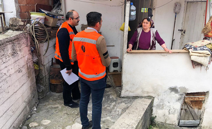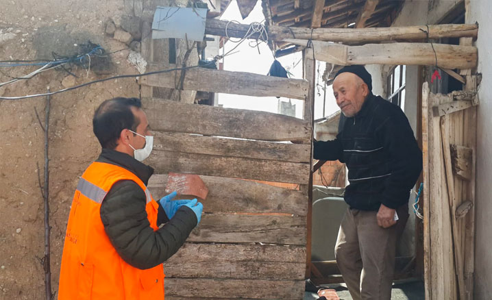 Koronavirüs tedbirlerine riayet ederek evlerinden dışarı çıkamayan vatandaşları ziyaret eden din görevlileri, vatandaşların ihtiyaçlarını soruyor, dertlerini dinliyor, madidi-manevi destek verirken moral ve motivasyon sağlıyor.
