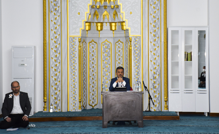 Merkez Şehit Güvenlik Korucusu Abdurrahman Avcı Camii'nde koronavirüs tedbirleri eşliğinde gerçekleştirilen konferans, Kur’an-ı Kerim tilavetiyle başladı, İl Müftü Yardımcısı Hanifi Özlen'in "Hz. Peygamber’in çocuklarla olan münasebeti" konulu konuşmasıyla devam etti.