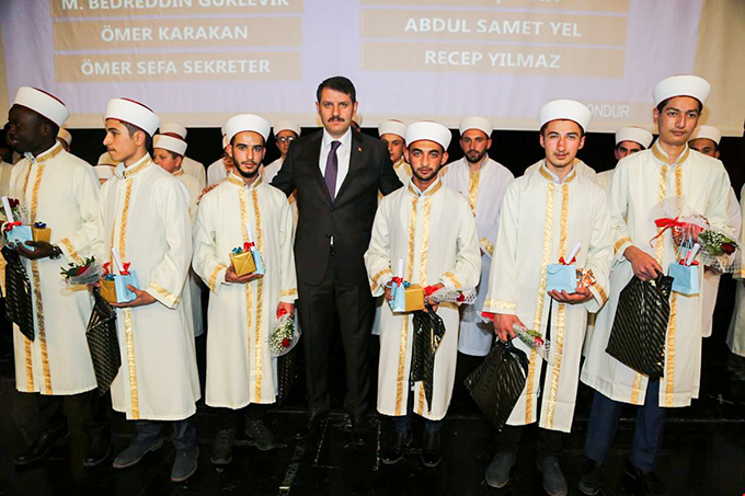 Konuşmaların ardından 53 hafızın ismi tek tek okundu ve sahneye davet edildi.