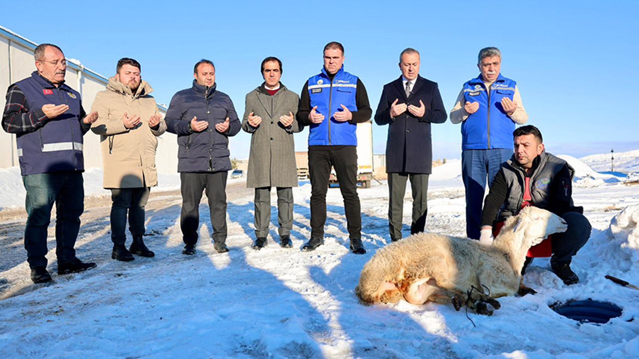 Belediyeden yapılan açıklamada, yoğun kar yağışı sonrası Belediye Başkanı Adem Uzun'un katılımıyla Miraç Kandili öncesi şükür kurbanı kesildiği belirtildi.
