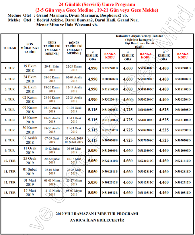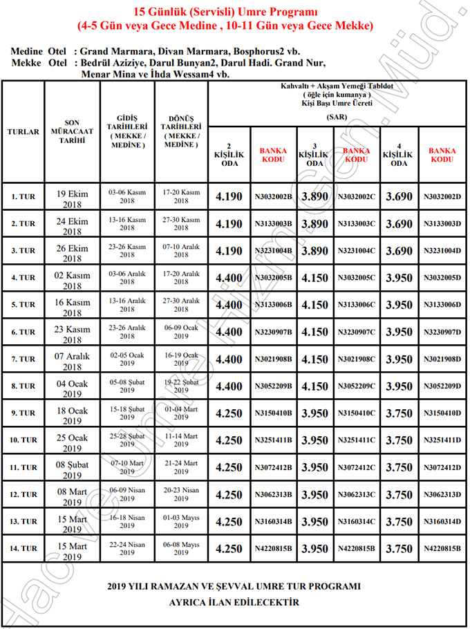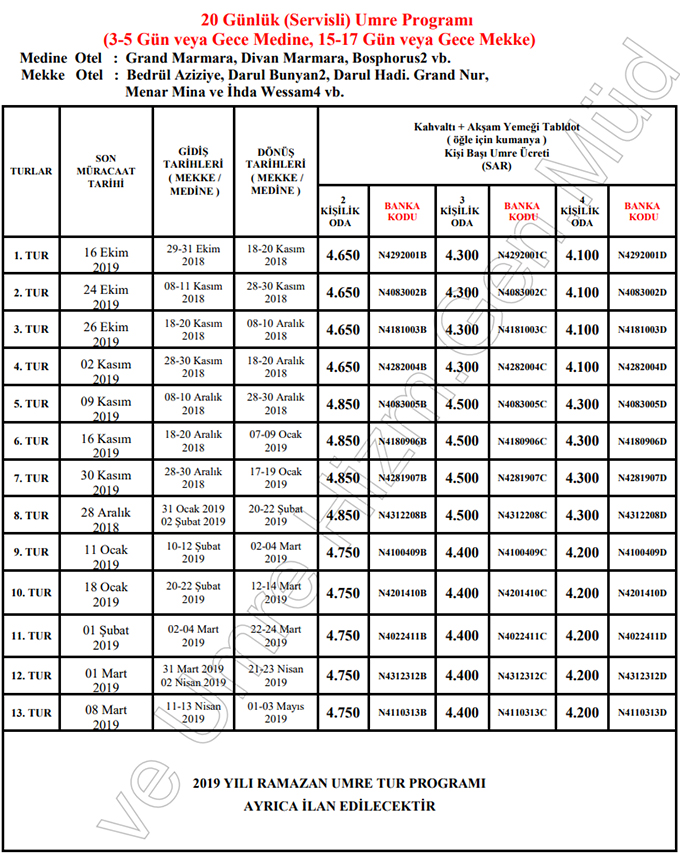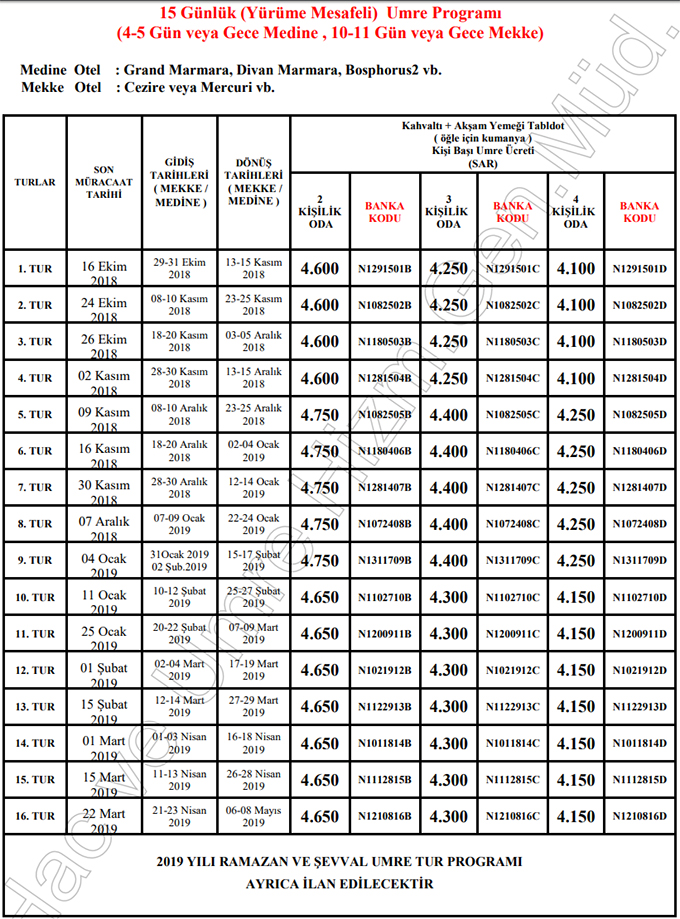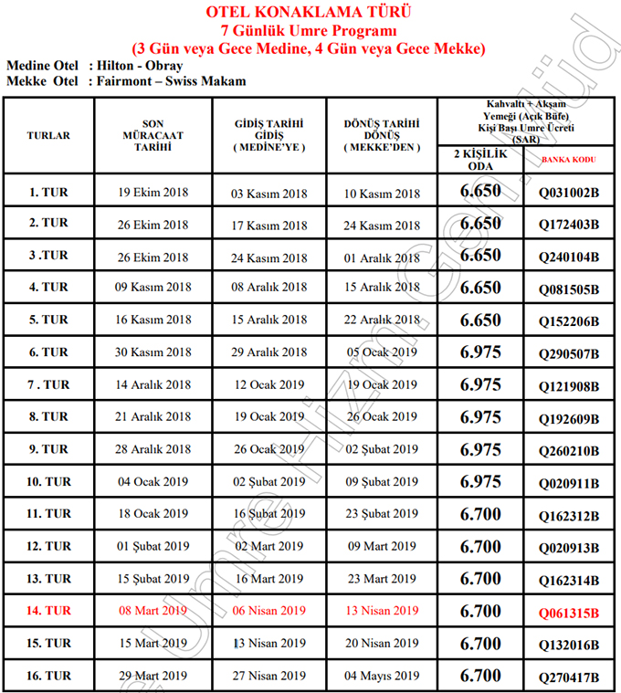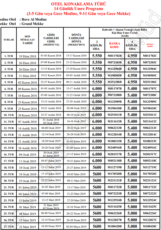 3. Kodla birlikte giderek Diyanet'le anlaşmalı bankalardan birisine umre ücretini yatırmalı