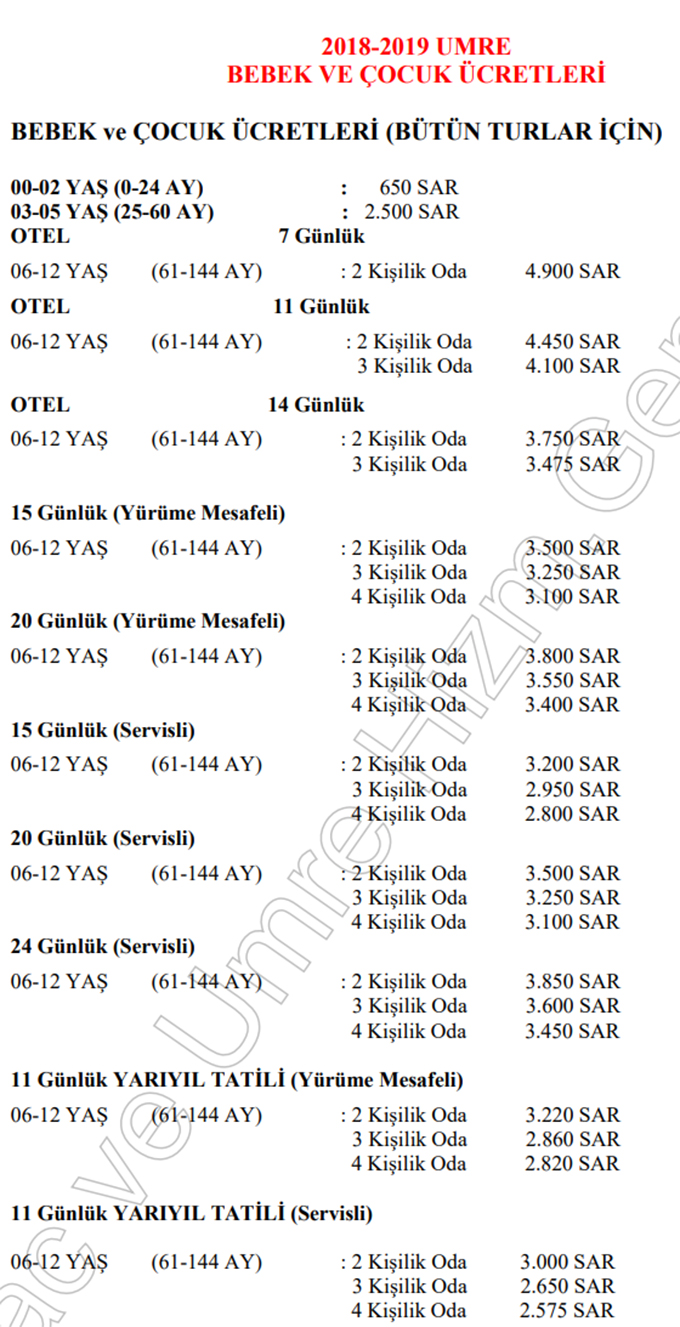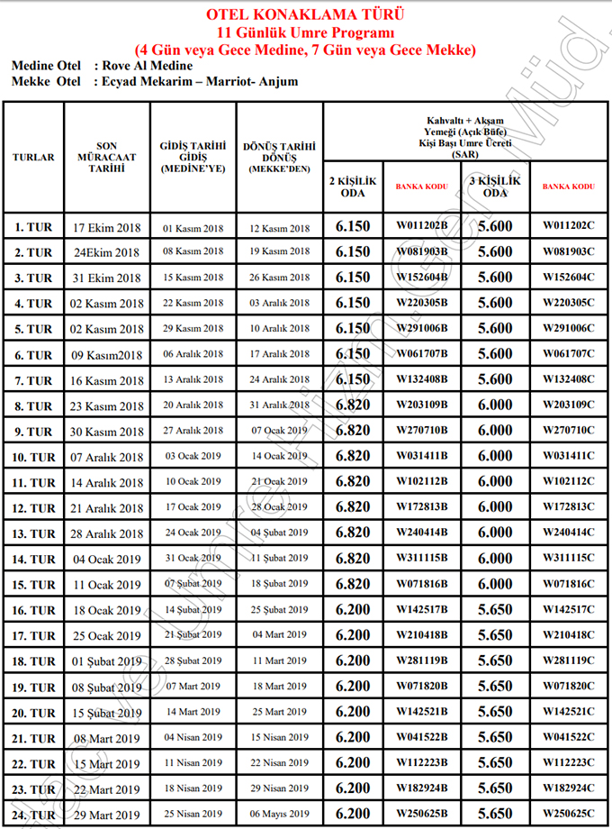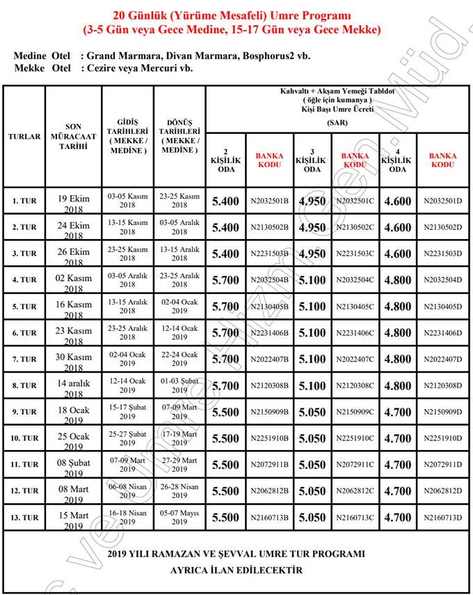 2018-2019 yılında Diyanet Organizasyonu ile Umre'ye gitmeyi tercih edenler;