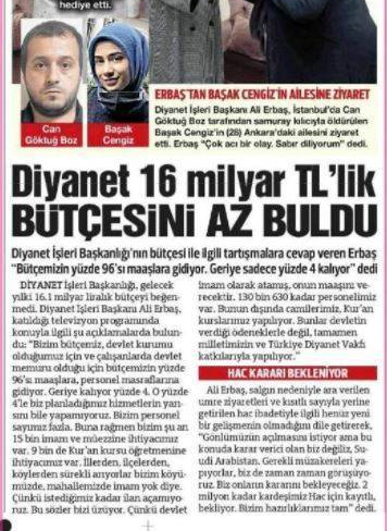 Gazete Başkan Erbaş'ın, Diyanet'in bütçesi hakkında yaptığı açıklamanın ardından indirime gitmek zorunda kaldı.