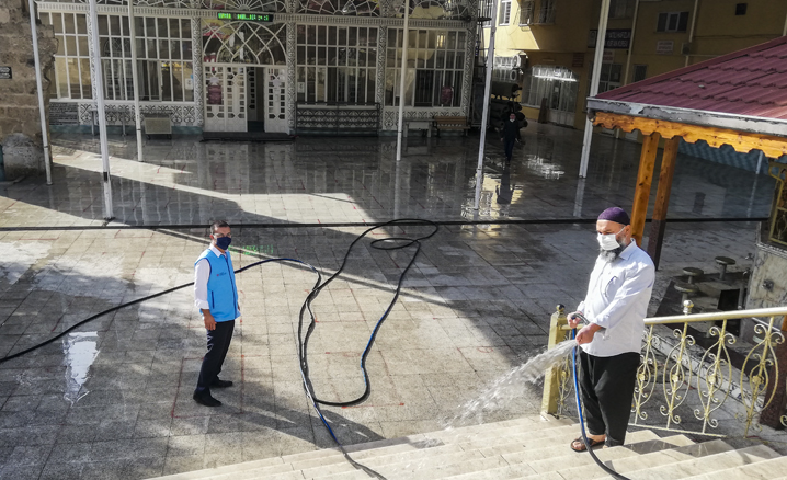 Özel gün ve gecelerde yapılacak programlar öncesinde dezenfekte çalışmaları yapılan camilerde yapılan denetimlerde maske ve sosyal mesafe kurallarına, camilerin temizlik ve hijyen durumlarına, özellikle Cuma namazlarında cemaat kapasitesinin geçilmemesi hususları üzerinde hassasiyetle duruluyor.