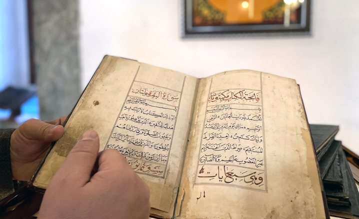 Osmanlı padişahı 2. Selim tarafından yaptırılan camide bulunan Kur'an-ı Kerim'in el yazması 10 cüzünün çok kıymetli bir eser olduğunu aktaran Aydın, şöyle konuştu: