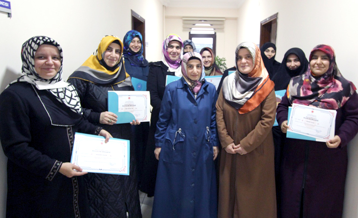 İl Müftü yardımcıları Mustafa Nurgün ve Dr. Ravza Cihan, kursiyerleri tebrik ederek başarı belgelerini takdim etti.
