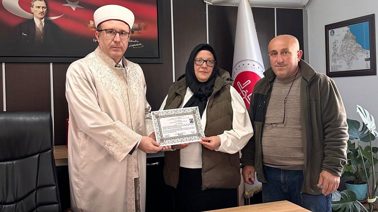 Yapılan dua sonrası Müftü Aktaş tarafından Yuliya Tunç’a "İhtida Belgesi" ile Diyanet İşleri Başkanlığı yayınlarından Kur’an-ı Kerim ve dini kitaplar hediye edildi.