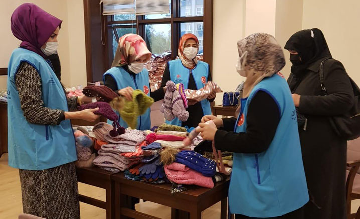 Türkiye Diyanet Vakfı Kadın Kollarının bulunduğu 14 ilde "İlmek İlmek İyilik" projesi yürütüldüğünü belirten Açık, proje kapsamında gönüllüler tarafından örülen ve hayırseverler tarafından bağışlanan atkı, bere ve eldivenlerle birlikte WEFA Uluslararası İnsani Yardım Organizasyonu tarafından temin edilen bot, mont, bere, eldiven ve çorapların Türkiye genelindeki ihtiyaç sahibi çocuklara ulaştırıldığını söyledi.