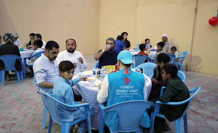 Türkiye Diyanet Vakfı (TDV), Ramazan ayı münasebetiyle Afganistan’ın kuzeyindeki Mezar-ı Şerif kentinde yetimlere iftar verdi.