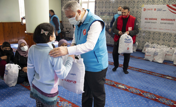 Kayseri İl Müftülüğü, Türkiye Diyanet Vakfı Kayseri Şubesi ve sivil toplum kuruluşları iş birliğiyle 500 çocuğa içerisinde mont, bot, çorap, bere, okul çantası ve maskenin bulunduğu hediye paketi ulaştırdı.
