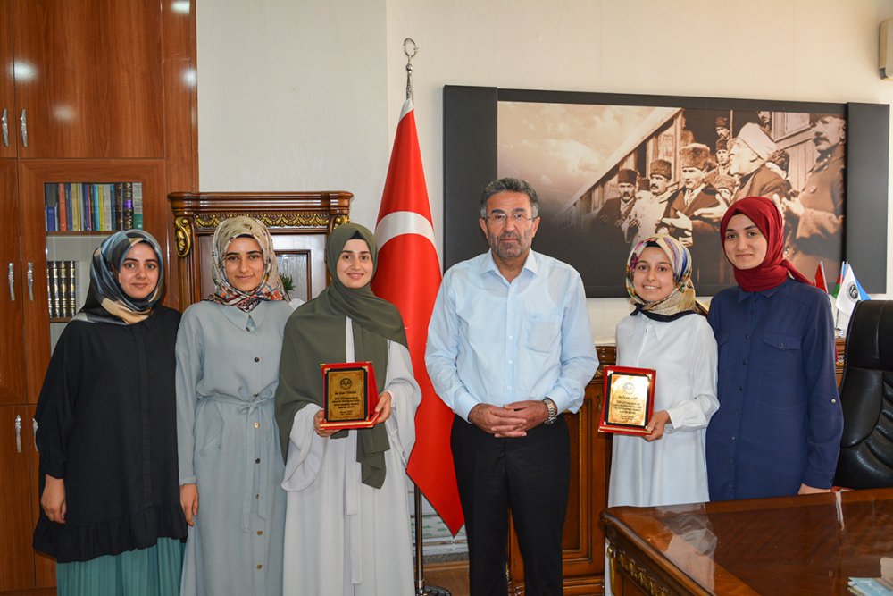 Üniversitede dereceye giren, aynı zamanda TDV evlerinde kalan öğrencileri Iğdır İl Müftüsü Mustafa Tekin makamında ağırladı.