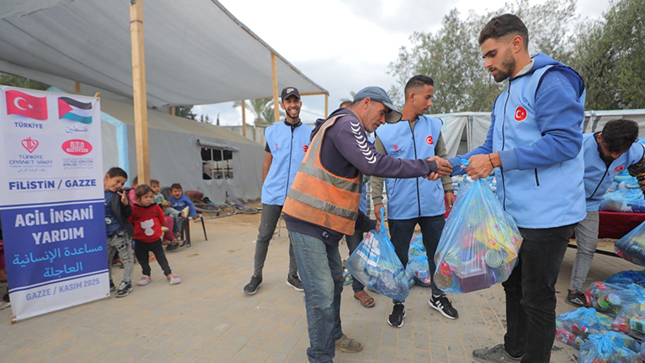 TDV, abluka altındaki Gazze Şeridi’nin Deyr Belah kentinde ihtiyaç sahiplerine gıda kolisi dağıttı.