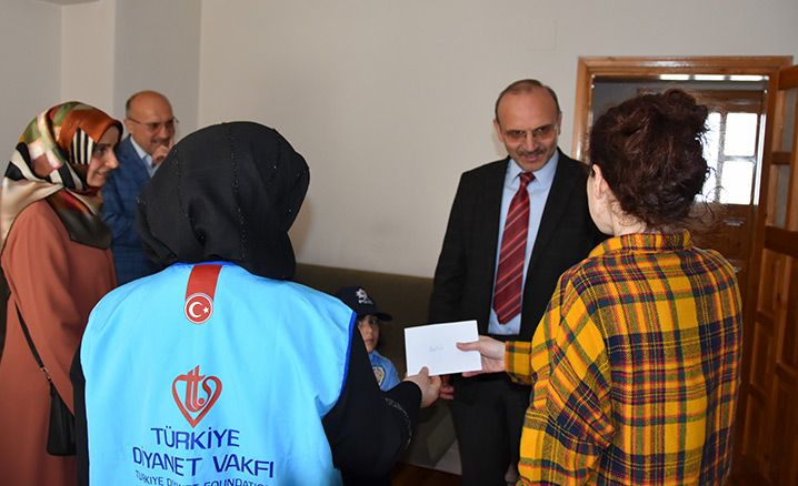 Bu kapsamda Vakfıkebir İlçe Müftüsü Şükür Küçük, TDV gönüllüleri ile birlikte ilçe merkezinde ikamet eden ihtiyaç sahibi bir aileye ziyaret etti.