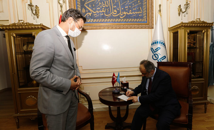 Müftü Maşalı’nın kurban vekaletini Türkiye Diyanet Vakfı adına kabul eden Türkiye Diyanet Vakfı İstanbul Şube Yöneticisi Mehmet Fatih Sönmez, teşekkür ederek bağış makbuzunu takdim etti.
