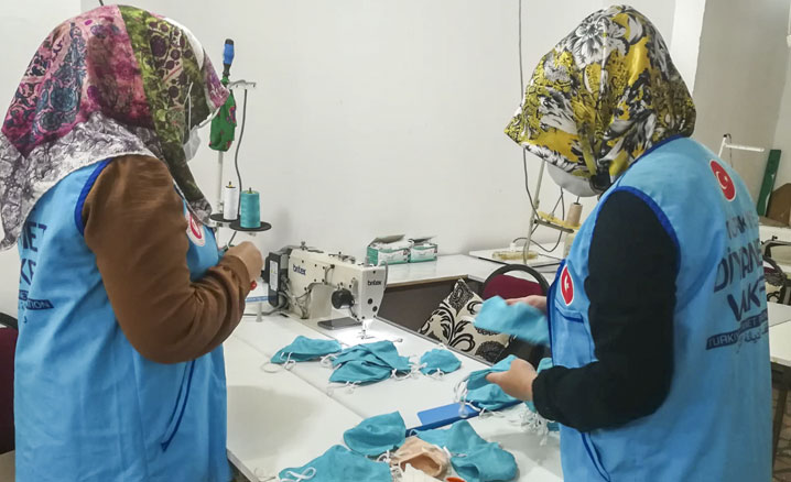 Türkiye Diyanet Vakfı Diyarbakır Kadın Kolları koordinesinde gönüllülerle birlikte ihtiyaç sahipleri için maske üretimine devam edileceği belirtildi.