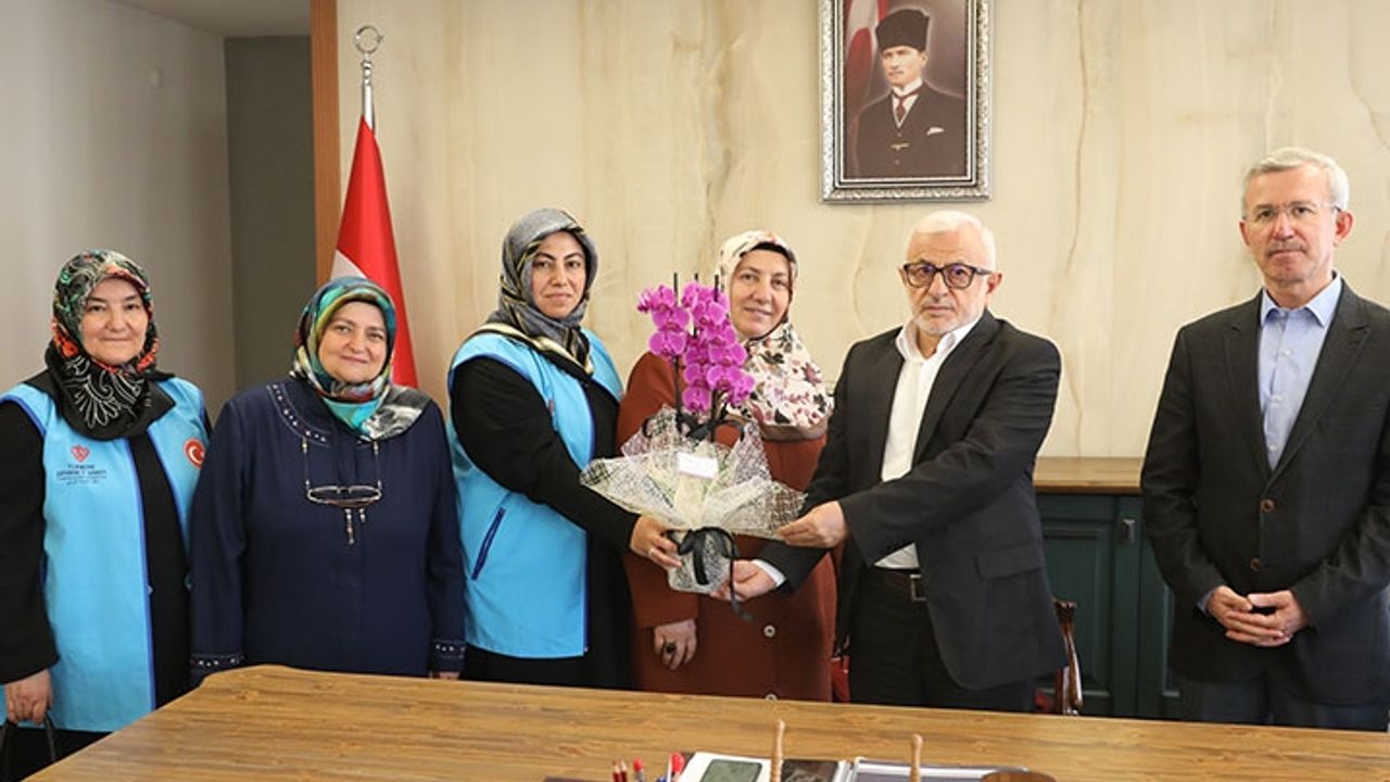 Türkiye Diyanet Vakfı (TDV) Kayseri Şubesi Kadın Kolları üyeleri "Mevlid-i Nebi ile Camiler ve Din Görevlileri Haftası" dolayısıyla Kayseri İl Müftüsü Yusuf Akkuş’u ziyaret etti.