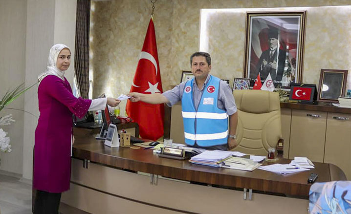 Din görevlilerinin kurban vekaletini Türkiye Diyanet Vakfı adına kabul eden İlçe Müftüsü Mehmet Yaman, teşekkür ederek bağış makbuzlarını takdim etti.