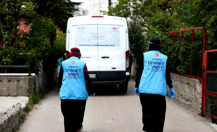 Yeni tip koronavirüs (kovid-19) tedbirleri kapsamında iftar çadırları kurulamaması nedeniyle hazırlanan iftar paketleri Türkiye Diyanet Vakfı gönüllüleri ve din görevlileri tarafından kapı kapı dolaşılarak ihtiyaç sahibi ailelere ulaştırılıyor.