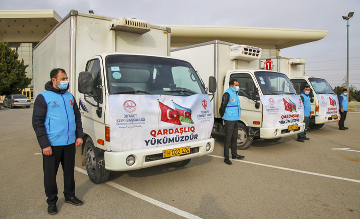 Diyanet İşleri Başkanlığı ile Türkiye Diyanet Vakfı iş birliğinde Türkiye'den gönderilen yardım malzemeleri, Azerbaycan'a ulaştı.