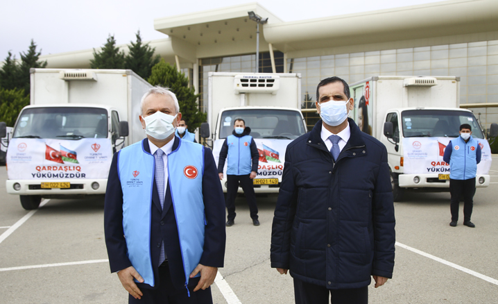 Türkiye'nin Bakü Büyükelçisi Erkan Özoral ve Bakü Büyükelçiliği Din Hizmetleri Müşaviri Zeki Yavuz Yılmaz'ın katıldığı törende, sağlık ürünlerinden oluşan yardım malzemeleri, Azerbaycan Savunma Bakanlığına ulaştırılmak üzere Tıbbi Bölgesel Birimler Yönetim Birliği (TABİB) yetkilileri tarafından teslim alındı.