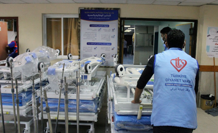 Türkiye Diyanet Vakfı (TDV) tarafından işgalci İsrail'in zulmü altındaki Gazze'de bulunan Şifa Hastanesi'ne, 20 fonksiyonel hasta yatağı ve 2 ambulans yardımı yapıldı.