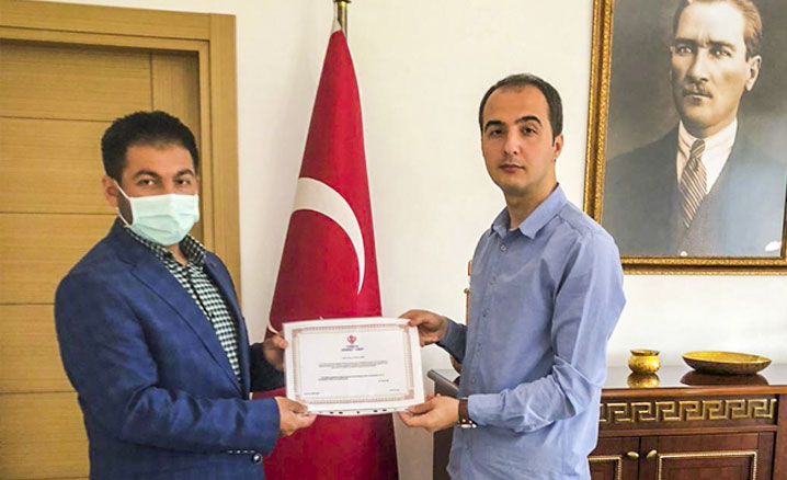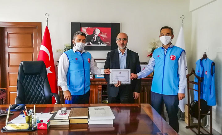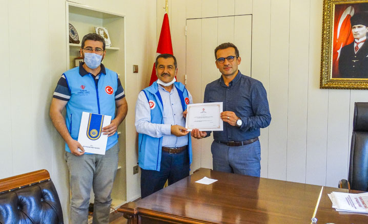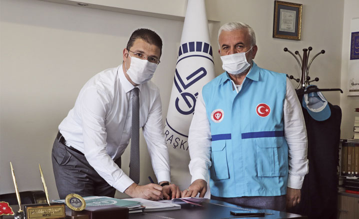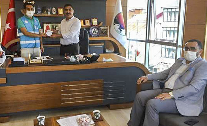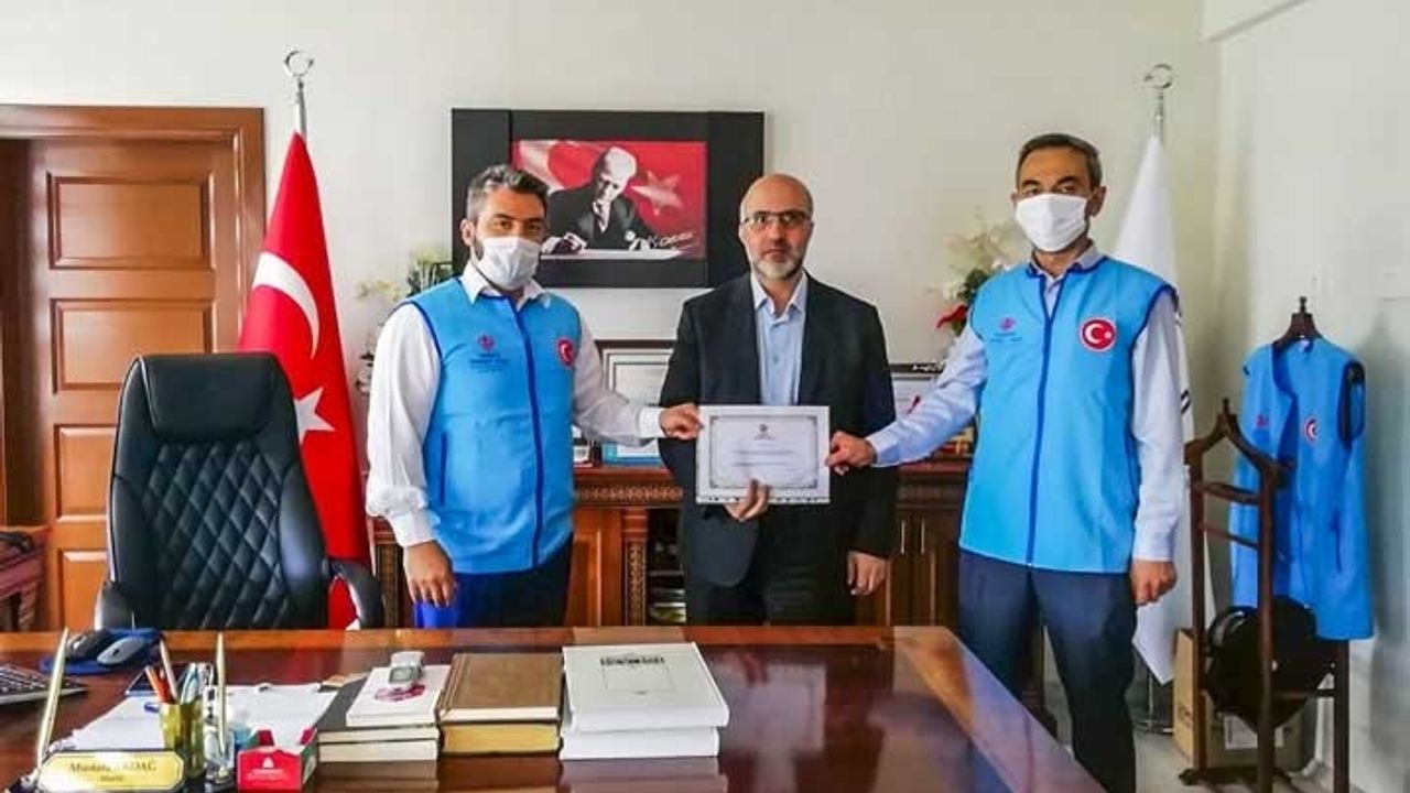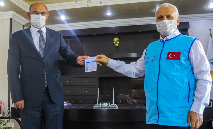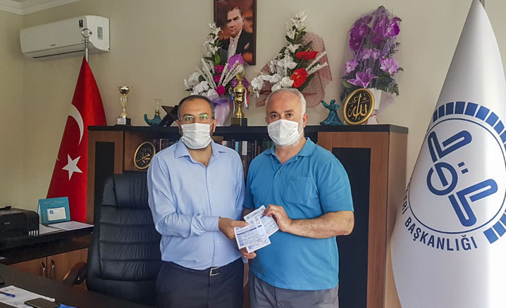 Yapılan bağışı Türkiye Diyanet Vakfı adına kabul eden İl Müftüsü Tandoğan Topçu, İl Özel İdaresi Genel Sekreteri Tenekeci’ye teşekkür ederek bağış makbuzunu takdim etti.