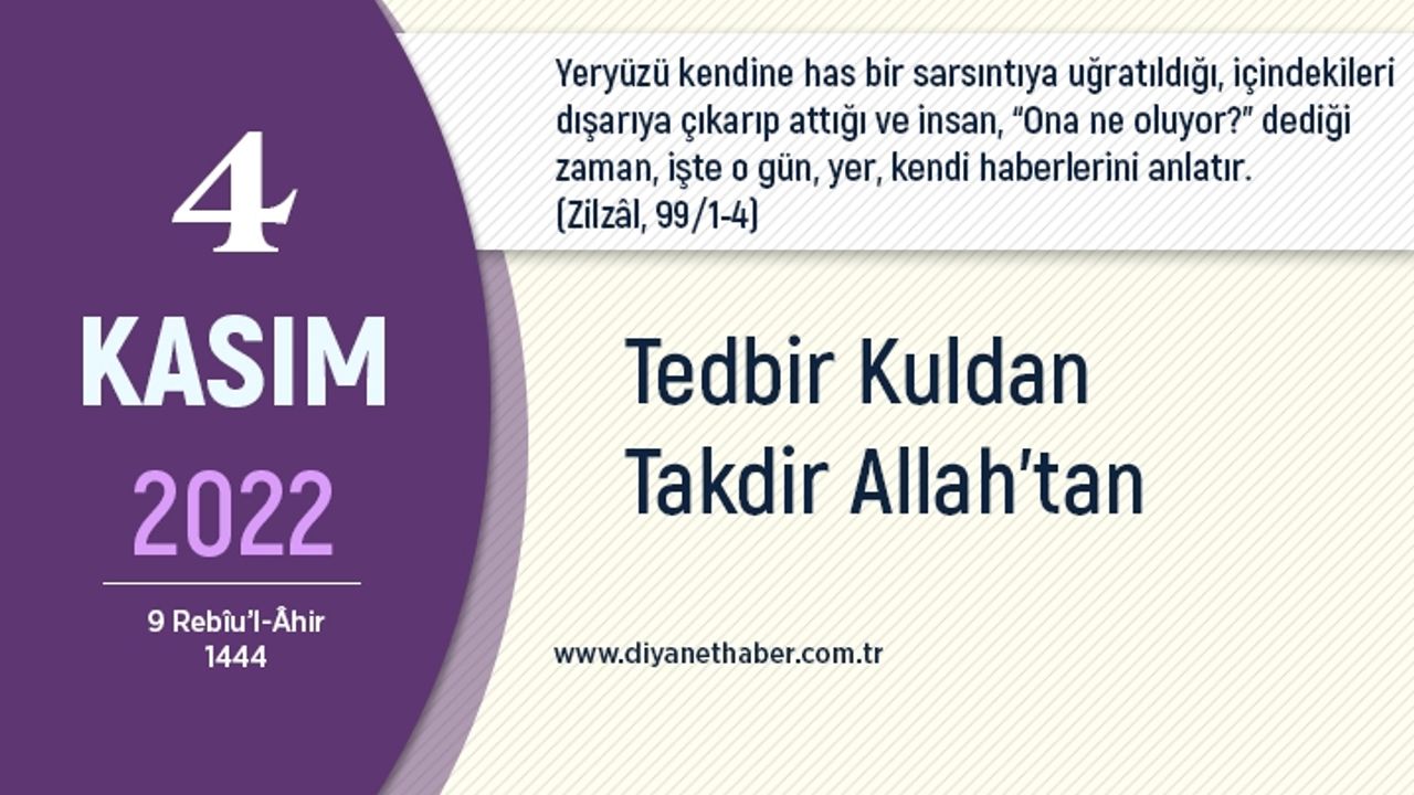 Tedbirin kuldan; takdirin Allah’tan olması: Hangi şartlar altında olursak olalım; bize verilen bu dünya hayatını en güzel şekilde değerlendirmenin ve içinde bulunduğumuz durumu hayra dönüştürmenin formülü budur. Kişi, kendi iradesine bağlı olan hususlarda bir insan olarak yapması gerekenleri yerine getirmeden -ne kadar arzu ederse etsin- istekleri ve arzuları pek gerçekleşmez.
