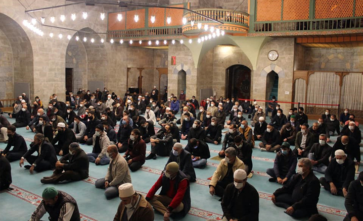 Sabah namazının cemaatle kılınmasının ardından din görevlilerince ilahi ve kasideler seslendirildi.