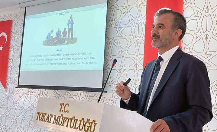 Bu kapsamda Tokat İl Müftülüğü ile Türkiye Diyanet Vakfı Tokat Şubesi ev sahipliğinde "2022 Yılı Vekalet Yoluyla Kurban Kesim Organizasyonu Tanıtım ve İstişare Toplantısı" düzenlendi.
