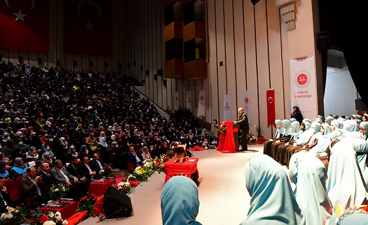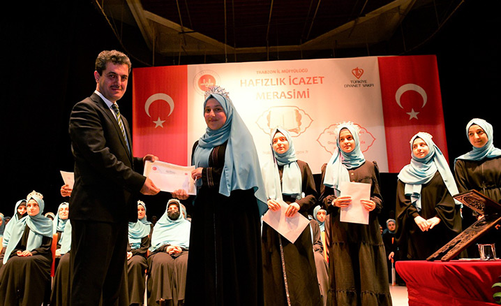 Trabzon İl Müftülüğüne bağlı Kur'an kurslarında hafızlık eğitimini tamamlayan 220 kız öğrenci için "Hafızlık İcazet Töreni" düzenlendi.