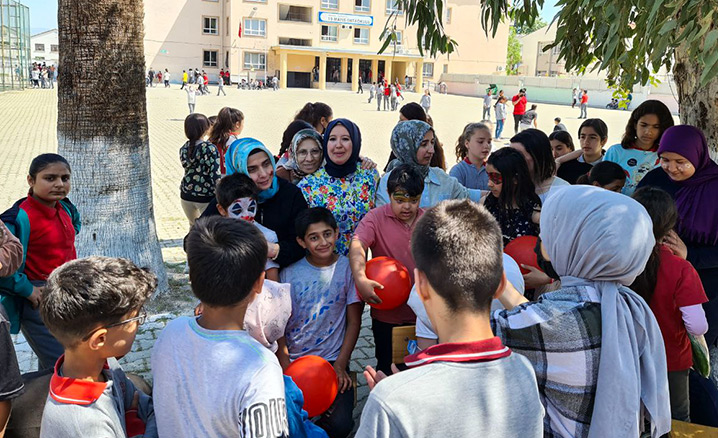 Üniversiteli gençler, çocuklarla birlikte çeşitli etkinlikler gerçekleştirdi.