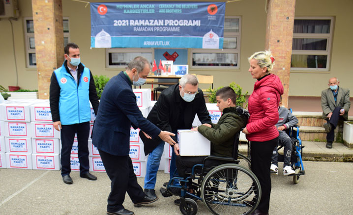 Konuşmaların ardından Arnavutluk Engelli Çocukların Bakımı Ulusal Veliler Derneği'ne üye olan 100 ihtiyaç sahibi ve engelli bireyi bulunan aileye gıda paketi teslim edildi.